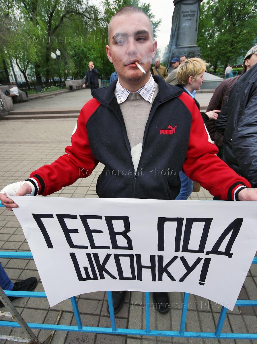Пикет националистов против гей-парада у памятника Грибоедову.