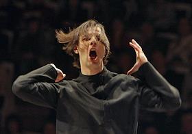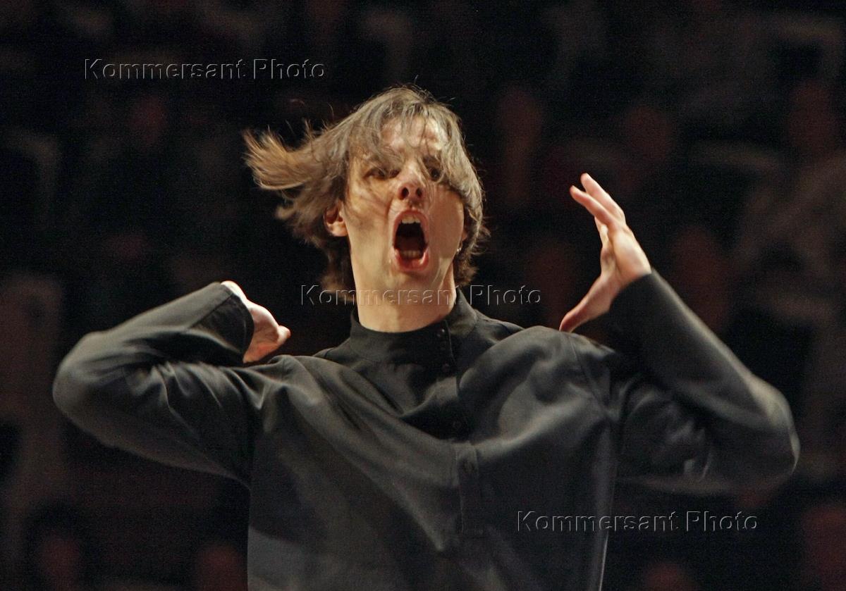 Дирижер Теодор Курентзис во время выступления с государственным симфоническим оркестром "Новая…