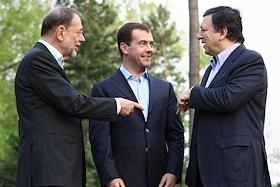 Открытие саммита Россия - ЕС. Президент России Дмитрий Медведев (слева) и генеральный секретарь…