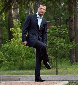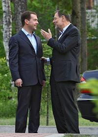 Президент России Дмитрий Медведев (слева) и его помощник Александр Абрамов (справа) во время…