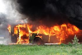 Горящий автобус ЛиАЗ.