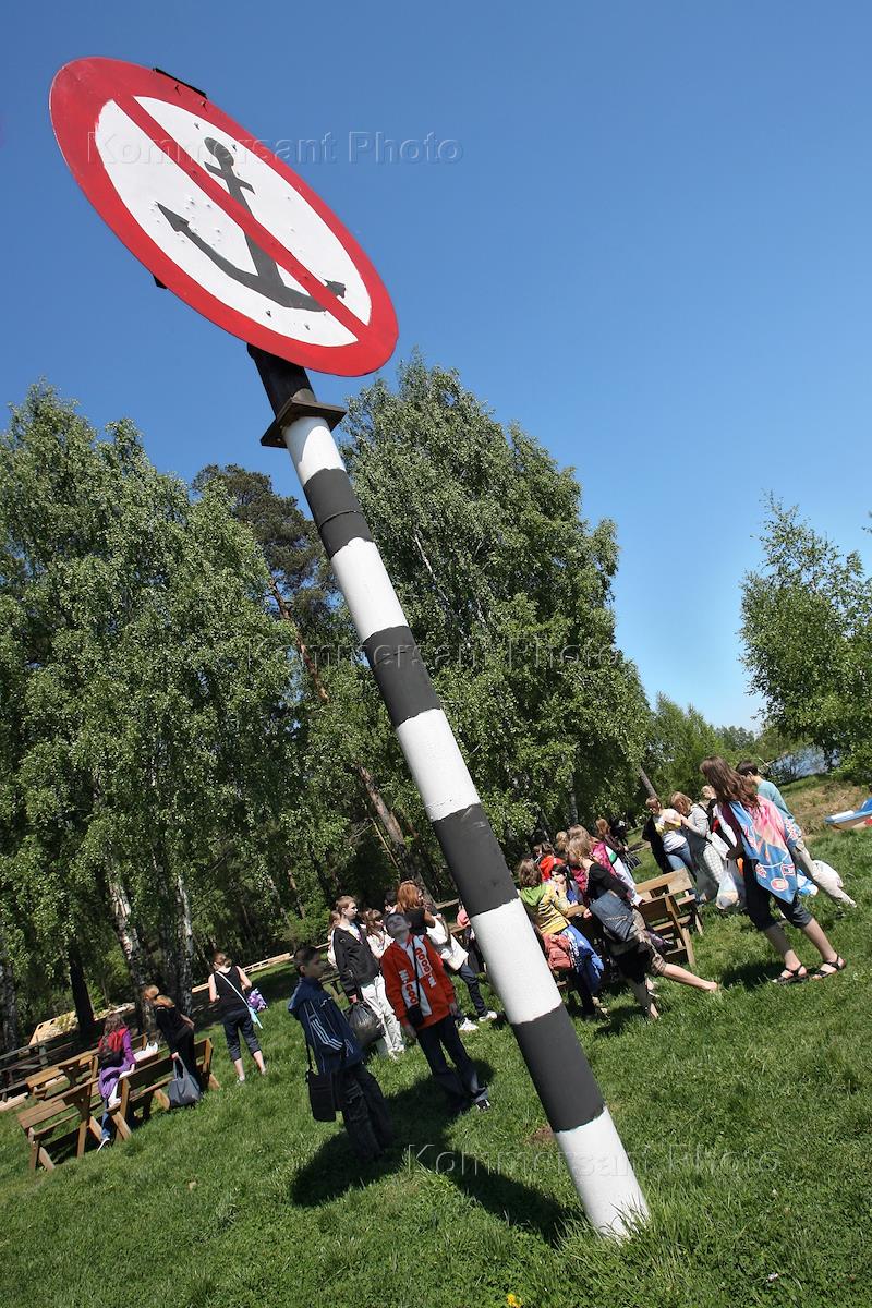 Туристическая база "Бухта радости". Табличка "Берегите лес от огня! Огонь беспощаден!".