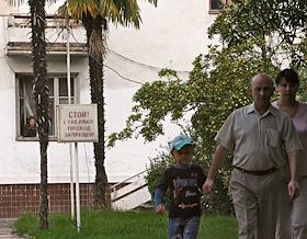 Виды Сухуми. Табличка на одной из улиц города "Стой! Стреляют. Проход запрещен!".