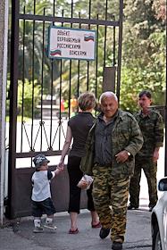 Жанровая фотография. Военнослужащие абхазской армии у проходной военной части.