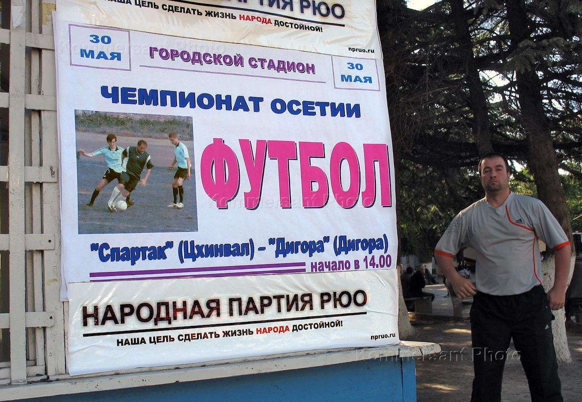 Парламентские выборы в Южной Осетии. Предвыборная агитация Народной партии РЮО и афиша футбольного…