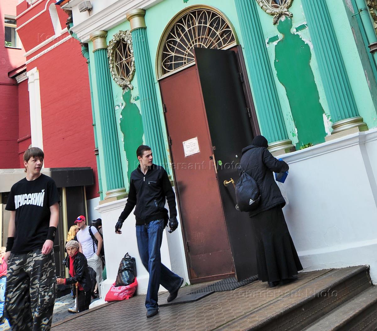 Нищая женщина просит милостыню у Воскресенских (Иверских) ворот.