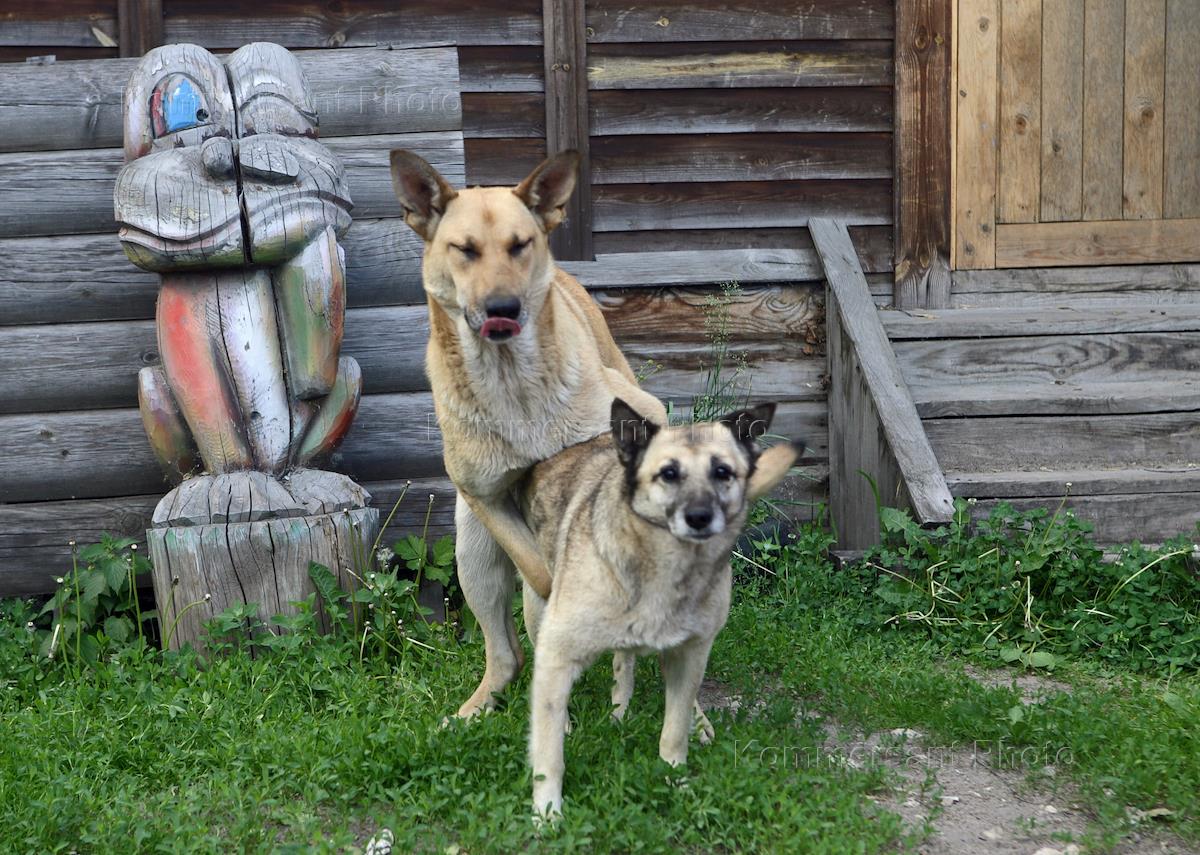 Сторожевые собаки на территории лесопилки деревообрабатывающей компании "А.В.А".