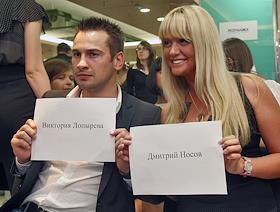 Телеведущие Дмитрий Носов (слева) и Виктория ЛОпырева (справа) на презентации всероссийского…
