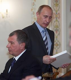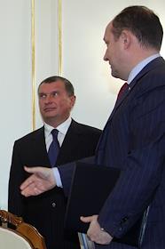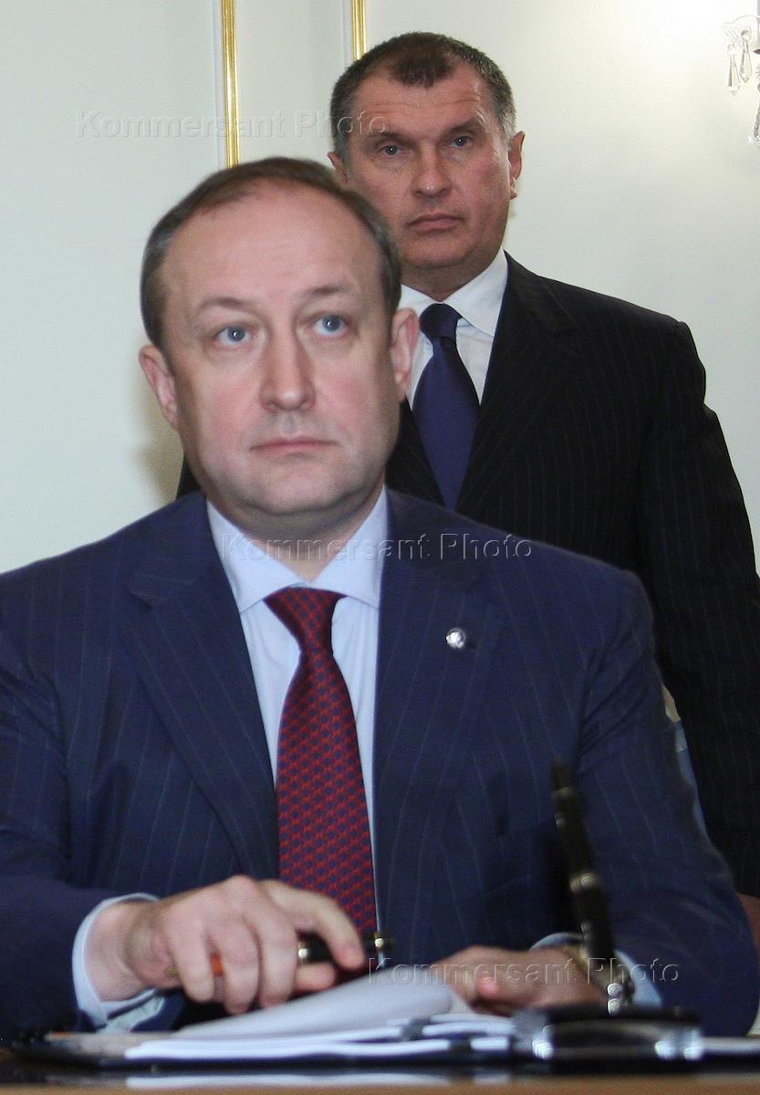 Заместитель председателя правительства России Игорь Сечин (слева) и генеральный директор…
