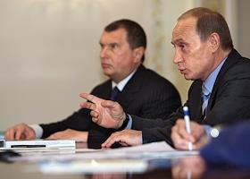 Председатель правительства России Владимир Путин (справа) и его заместитель Игорь Сечин (слева) во…