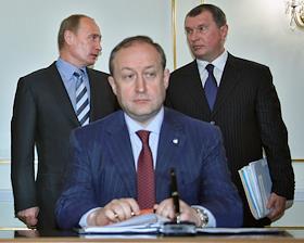 Слева направо: председатель правительства России Владимир Путин, главный исполнительный директор…