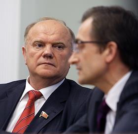 Лидер Коммунистической партии Российской Федерации (КПРФ) Геннадий Зюганов (слева) и руководитель…