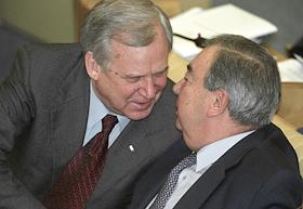 Депутат Государственной Думы Владимир Рыжков (слева) на очередном думском заседании.