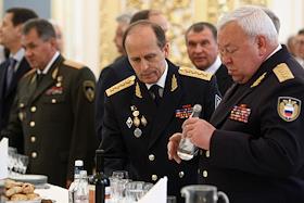 Министр обороны России Анатолий Сердюков (справа) во время торжественного приема в честь выпускников…