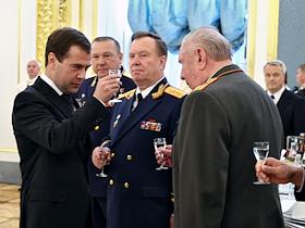 Президент России Дмитрий Медведев (в центре) на торжественном приеме в честь выпускников военных…