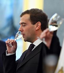 Президент России Дмитрий Медведев (в центре) во время торжественного приема в честь выпускников…