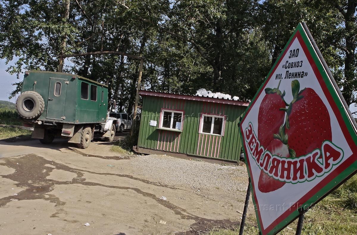 Сбор урожая клубники в ЗАО "Совхоз им. Ленина".