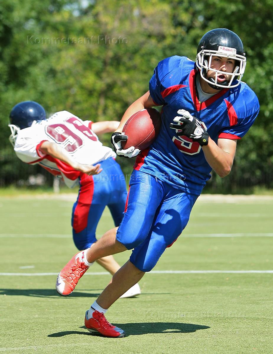 Тренировка юниорской команды Детской Лиги Американского Футбола (ДЛАФ) на стадионе ДЛАФ.