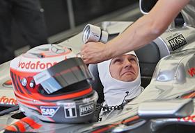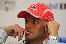 Финский гонщик Хейкки Ковалайнен на пресс-конференции перед стартом автомобильного шоу Bavaria…
