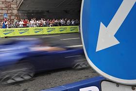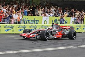 Гонщик "Формулы 1" Дэвид Кулхард (справа) после автомобильного шоу Bavaria Moscow City Racing. Шоу…
