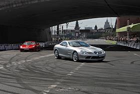 Автомобильное шоу Bavaria Moscow City Racing в центре Москвы.