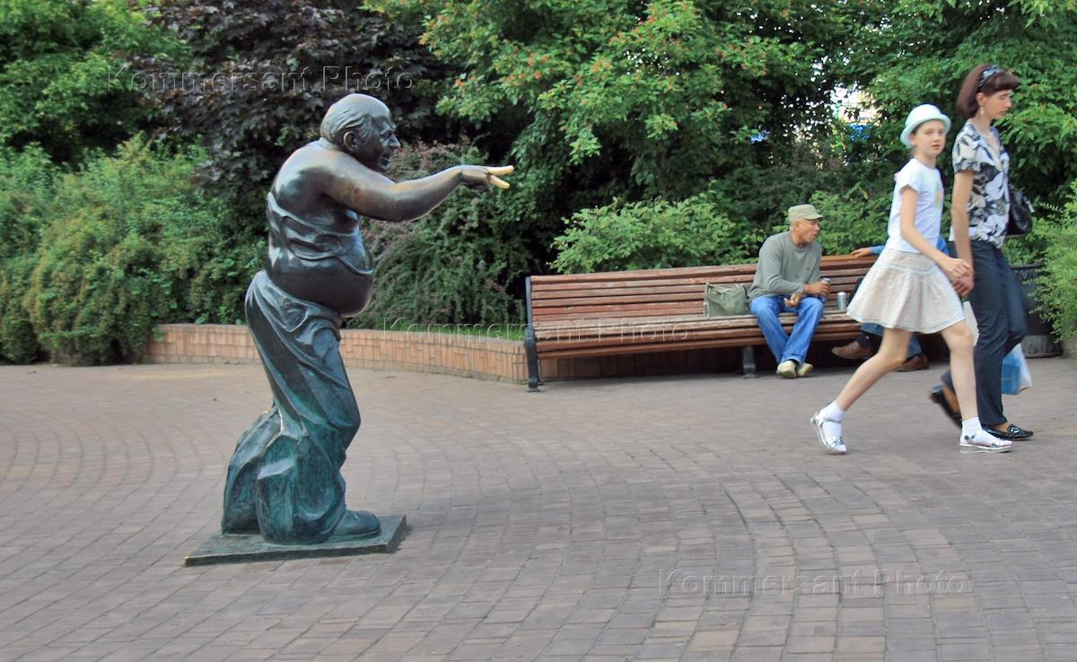 Виды Москвы. Памятник актеру Евгению Леонову (в образе Доцента из фильма "Джентльмены удачи") на…