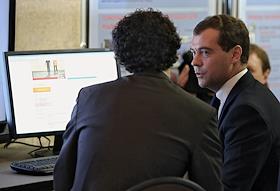 Президент России Дмитрий Медведев (справа) во время посещения Российского федерального ядерного…