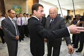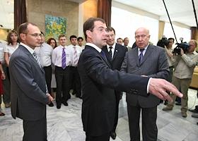 Президент России Дмитрий Медведев (справа) во время посещения Российского федерального ядерного…