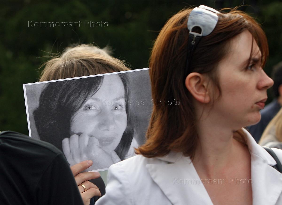 Акция памяти убитой правозащитницы Натальи Эстемировой прошла в Новопушкинском сквере. Плакат "Убита…