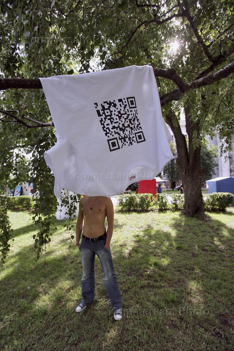 Футболка дизайнеров студии VSЁPOPSA с QR-кодом.