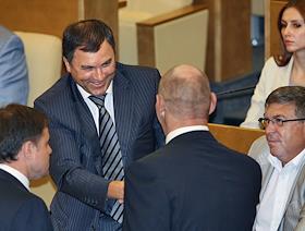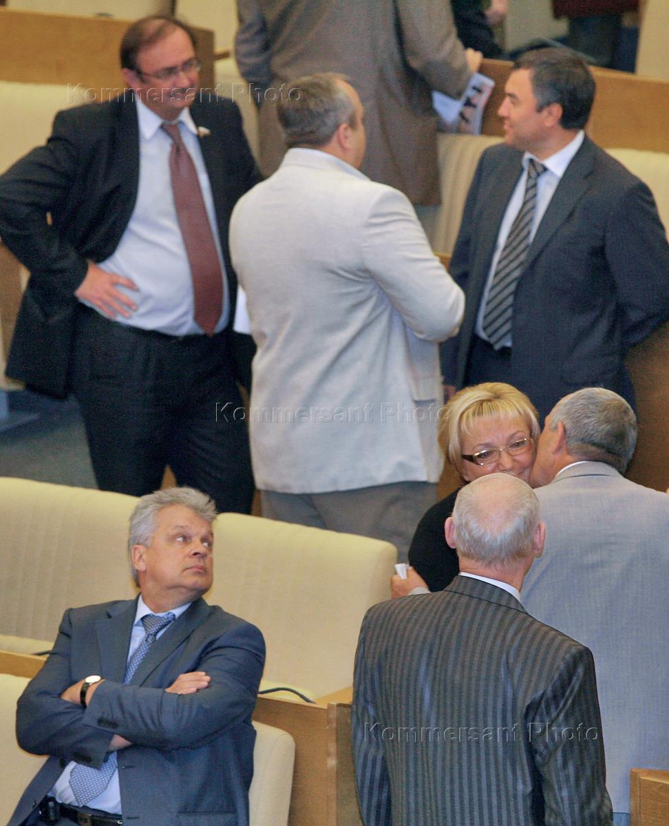 Председатель Государственной думы России Борис Грызлов (справа) и его заместители Олег Морозов…