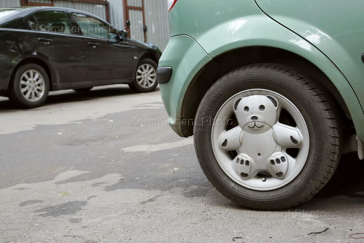 Жанровая фотография. Оригинальный диск колеса автомобиля в виде мишки.