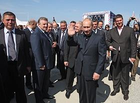 Председатель правительства России Владимир Путин (в центре) во время торжественной церемонии начала…