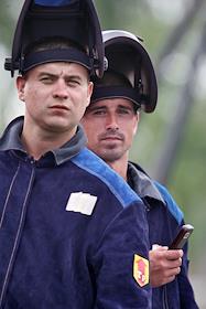 Рабочие во время торжественной церемонии начала строительства магистрального газопровода "Сахалин -…