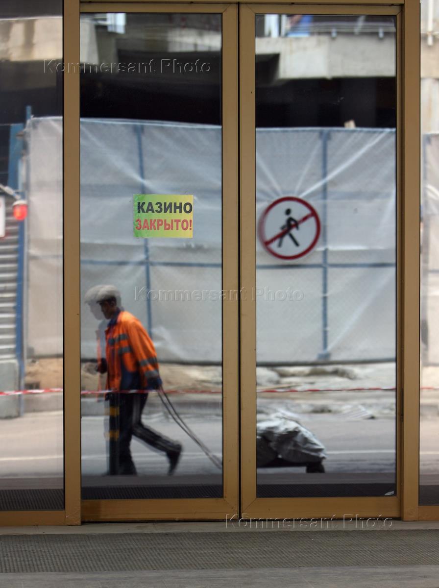 Жанровая фотография. Табличка на двери "Казино закрыто".