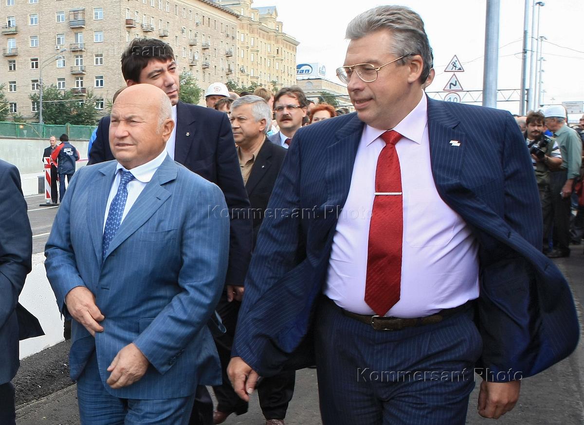 Мэр Москвы Юрий Лужков (слева) и президент ОАО "Научно-производственное объединение "Космос" Андрей…