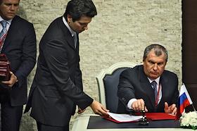 Заместитель председателя правительства России Игорь Сечин (справа) во время церемонии подписания…