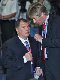 Заместитель председателя правительства России Игорь Сечин (слева) и руководитель Федеральной…
