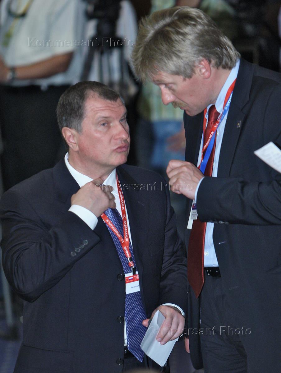 Заместитель председателя правительства России Игорь Сечин (слева) и пресс-секретарь правительства…