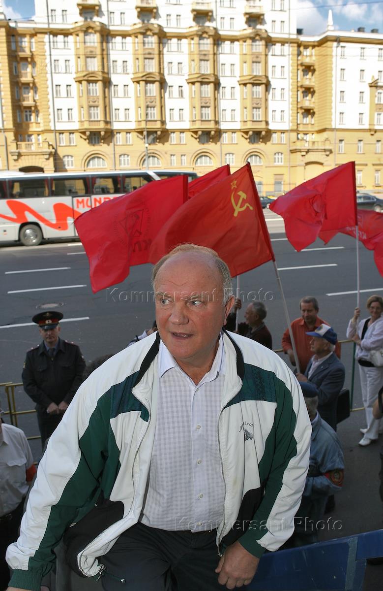 Лидер Коммунистической партии Российской Федерации (КПРФ) Геннадий Зюганов во время митинга под…