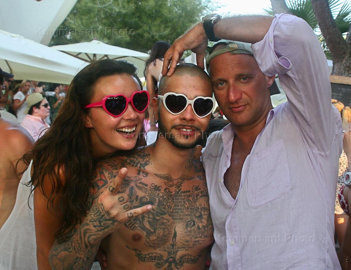 Слева направо: Анастасия Максимова, певец Тимати и ресторатор Александр Соркин в ресторане пляжа…