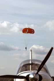 Жанровая фотография. Парашютист спускается на аэродром Ватулино.