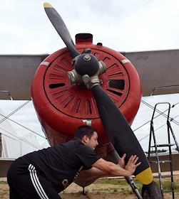 Жанровая фотография. Авиаконструкторы-любители переливают авиационный керосин на аэродроме…