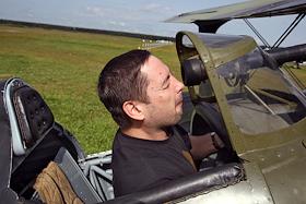 Авиаконструктор в кабине своего самолета во время испытательных полетов на аэродроме "Ватулино".