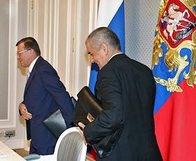 Первый заместитель председателя правительства России Виктор Зубков (слева) и руководитель…