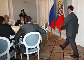 Совещание у Президента РФ Дмитрия Медведева о мерах по снижению потребления алкоголя в России, в резиденции "Бочаров ручей".