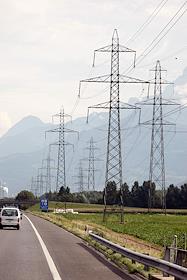 Опоры линии электропередач (ЛЭП) вдоль автомобильной трассы.