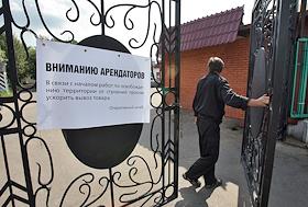 Снос зданий Черкизовского рынка. Демонтаж торговых павильонов. Объявление на воротах рынка "Вниманию…