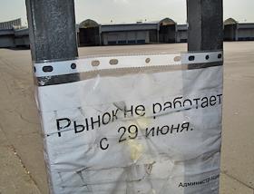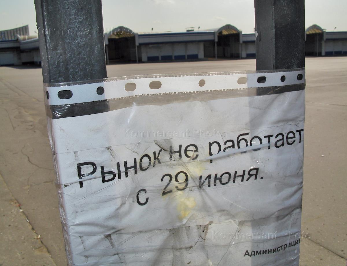 Территория закрытого Черкизовского рынка перед началом сноса зданий рынка. Объявление на ограде…