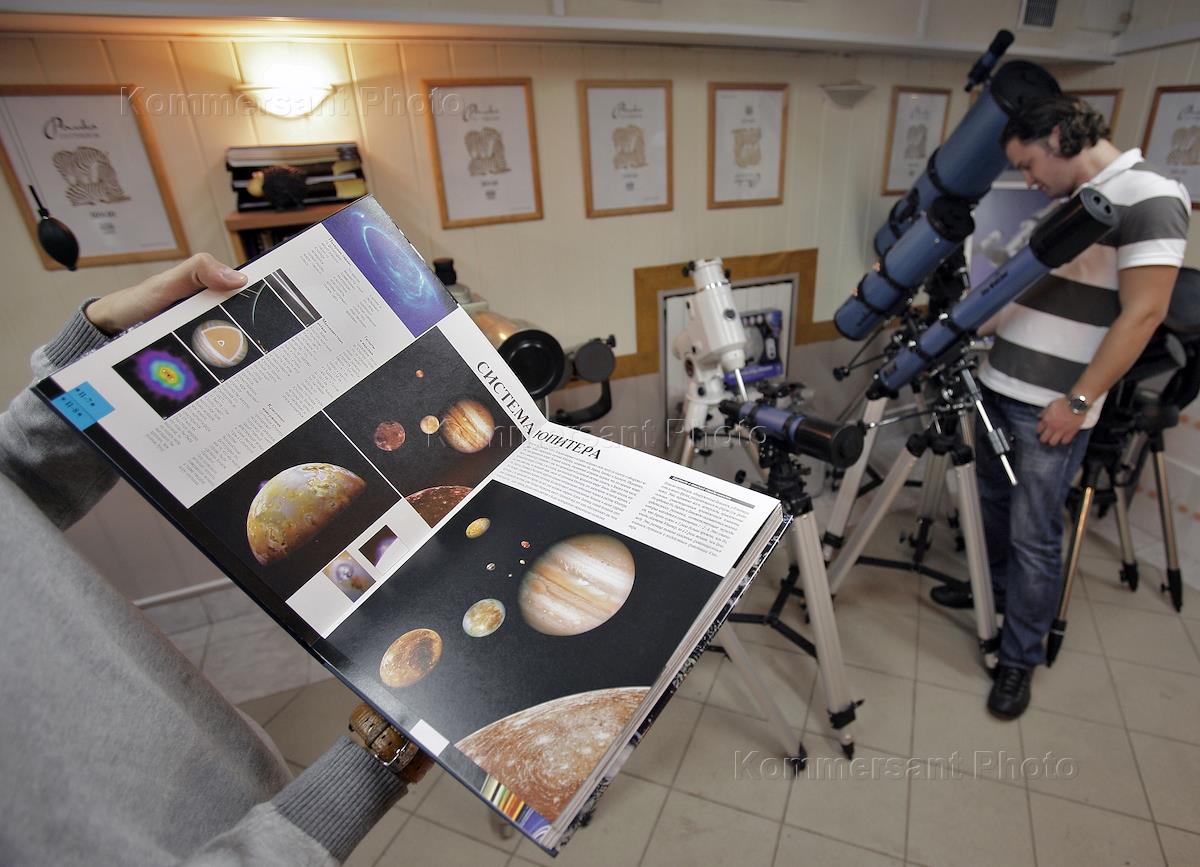 Жанровая фотография. Продажа телескопов в магазине "Звездочет".